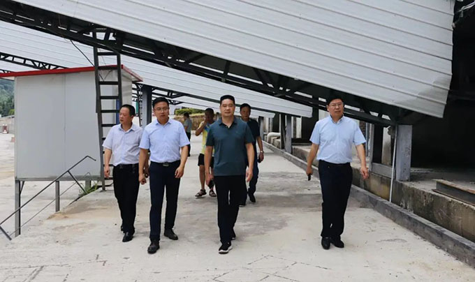 萬(wàn)寶投資集團(tuán)黨委書(shū)記、董事長(zhǎng)陽(yáng)文林(左三),萬(wàn)寶投資集團(tuán)總經(jīng)理、萬(wàn)鵬建材董事長(zhǎng)徐業(yè)波(右一)等實(shí)地察看鑫鑫采石場(chǎng)場(chǎng)區(qū)