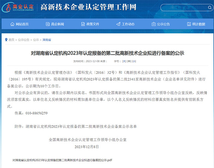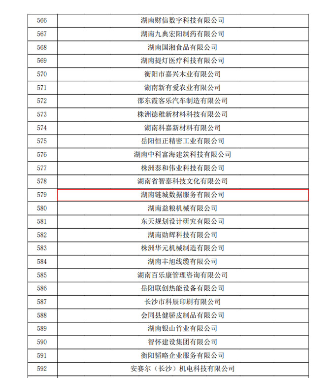 2023年12月,湖南省認(rèn)定機構(gòu)2023年認(rèn)定報備的第二批高新技術(shù)企業(yè)備案名單公示,湖南鏈城數(shù)據(jù)服務(wù)有限公司赫然在列,公司申報國家級高新技術(shù)企業(yè)獲批通過。