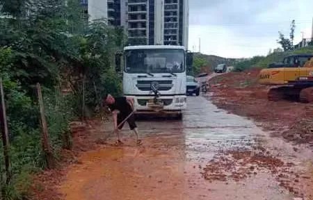 (第一時間清理清掃馬路淤泥,保障群眾安全出行)